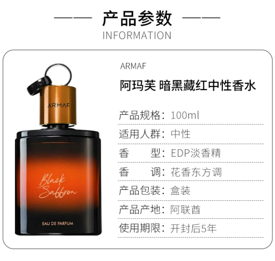 Armaf阿瑪芙 暗黑藏紅男女士中性香水EDP花香東方調